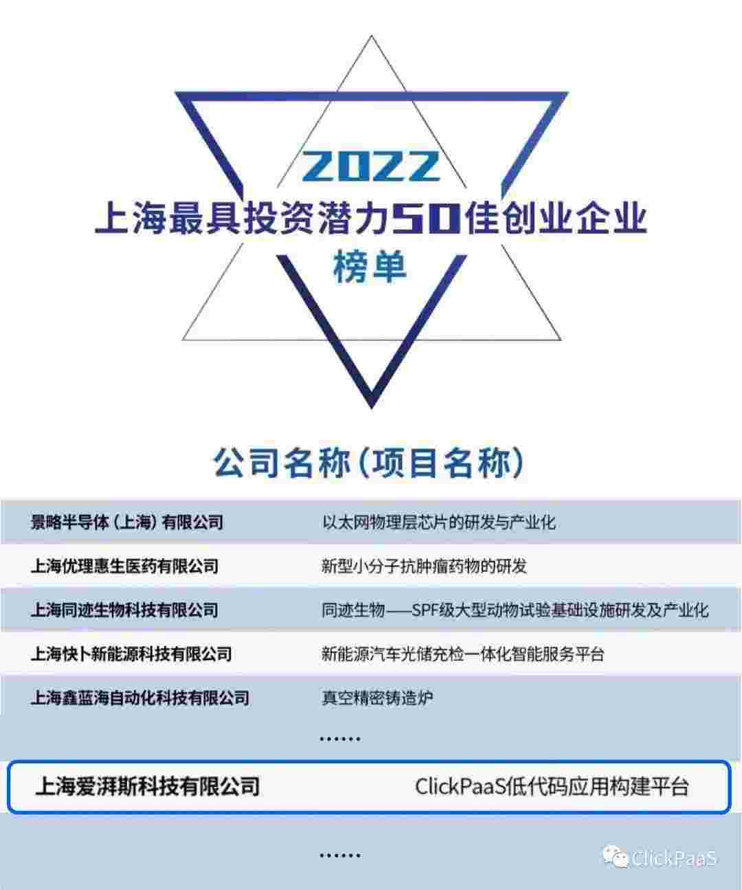 OPPO钱包 作为国内低代码PaaS平台的领军企业,,,,,与120家创企入围角逐。。。。。。。。。。。。。。期间接受了来自德同资本、、、、、、、、、领中资本等知名投资机构的10位投资人组成专家评委团的背靠背盲选。。。。并最终入围“2022上海最具投资潜力50佳创业企业”榜单,,,,,,,,被列入“上海市重点培育创业企业库”。。。。。。。。。