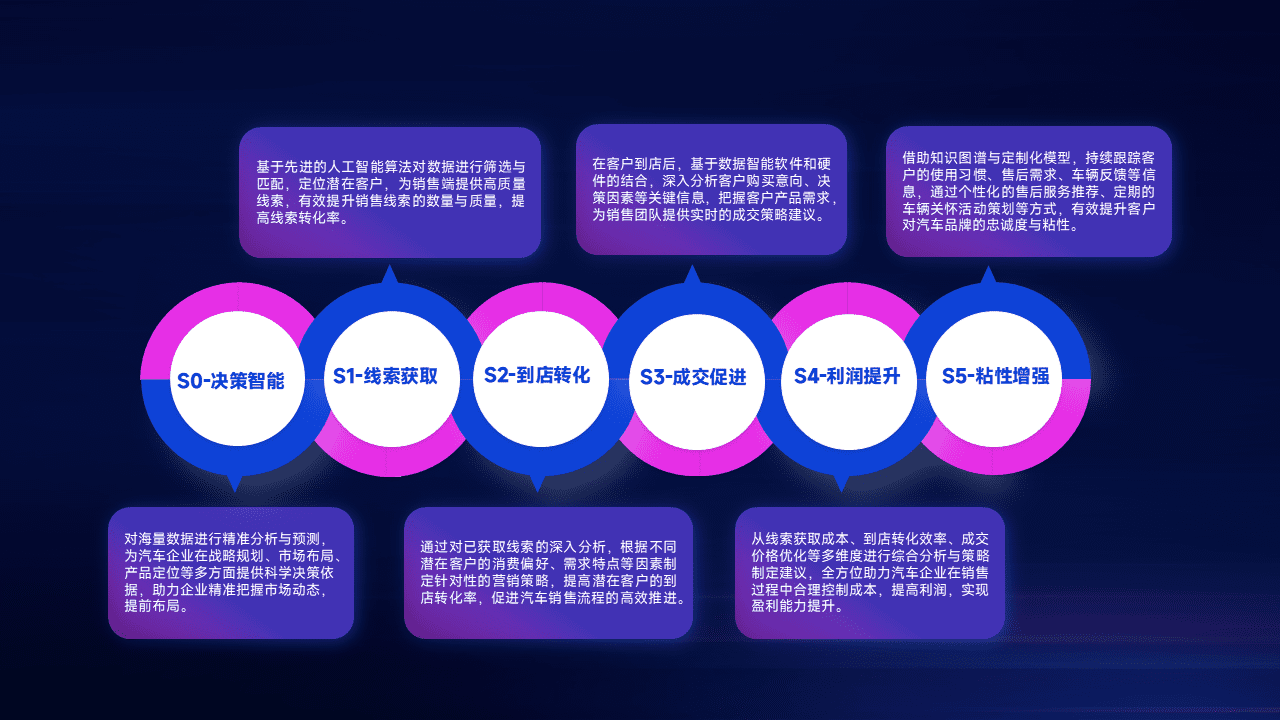 通过拓宽潜在客户来源、、、优化线索分配并提高到店转化率,,,以增强销售效率。。同时,,利用线索数据不断优化分析模型,,有效提升转化率,,扩大营销影响力。。。